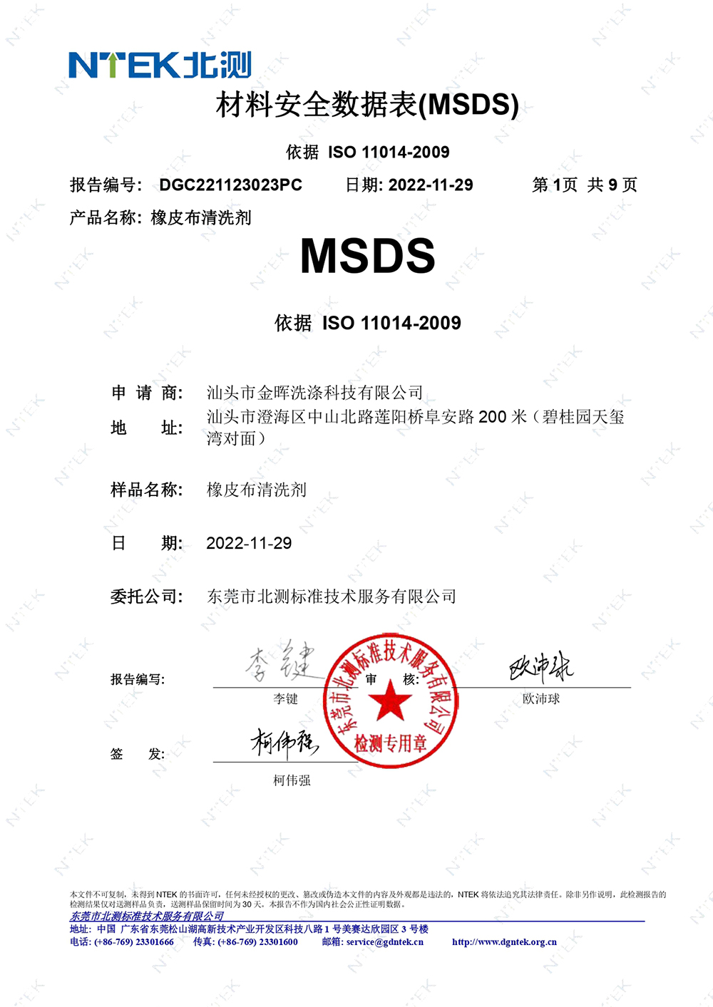 油墨清洗劑檢測(cè)報(bào)告